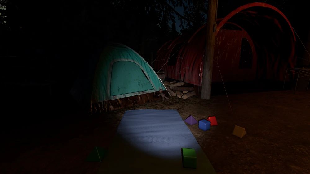 | Voodoo-Puppe Die Voodoo-Puppe erscheint vor dem kleinen türkisfarbenen Zelt neben dem roten Zelt |