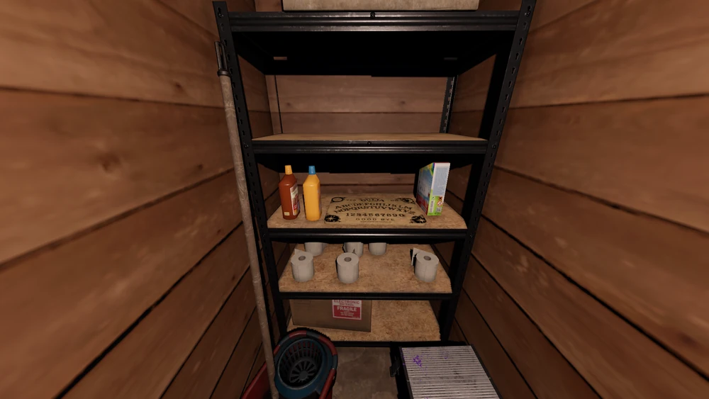 Das Ouija-Brett erscheint auf dem Regal im Putzmittelschrank