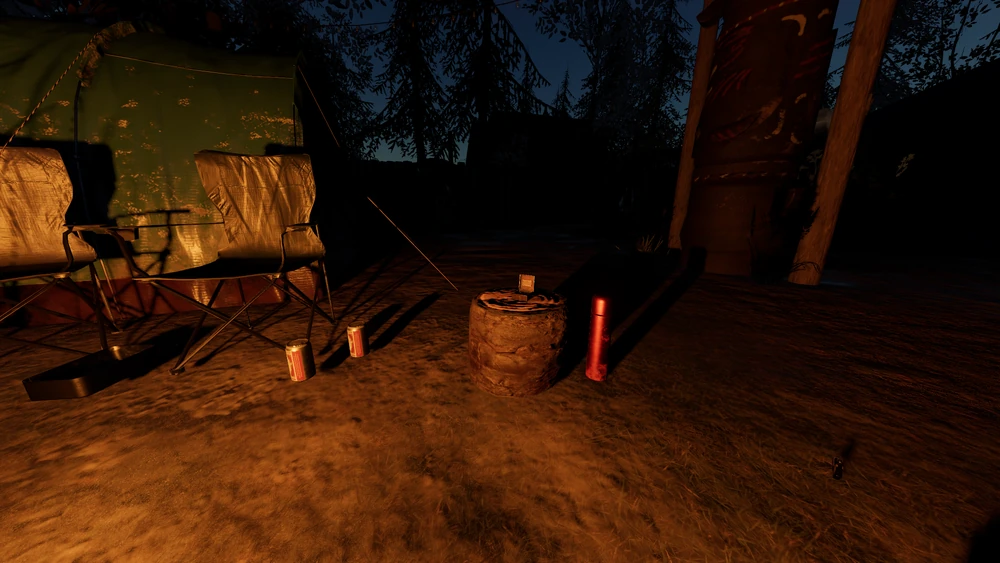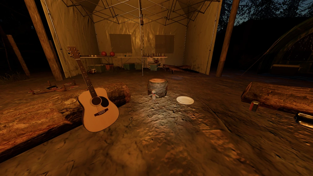 Die Voodoo-Puppe erscheint an einem Baumstamm in Lagerfeuer A gelehnt