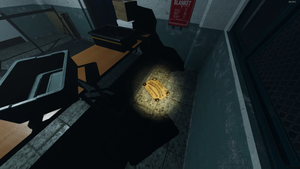 Das Ouija-Brett spawnt auf dem Boden hinter dem Tisch mit den Kisten