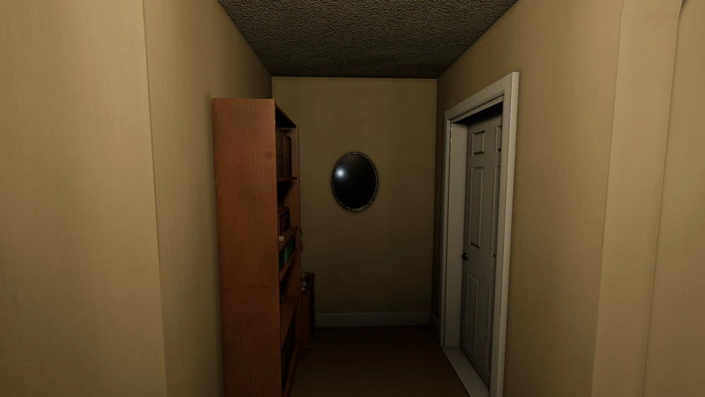 | Spiegel Der Spiegel erscheint an der Wand neben der Tür des Hauptschlafzimmers im Wohnzimmer |